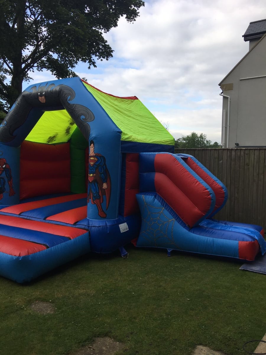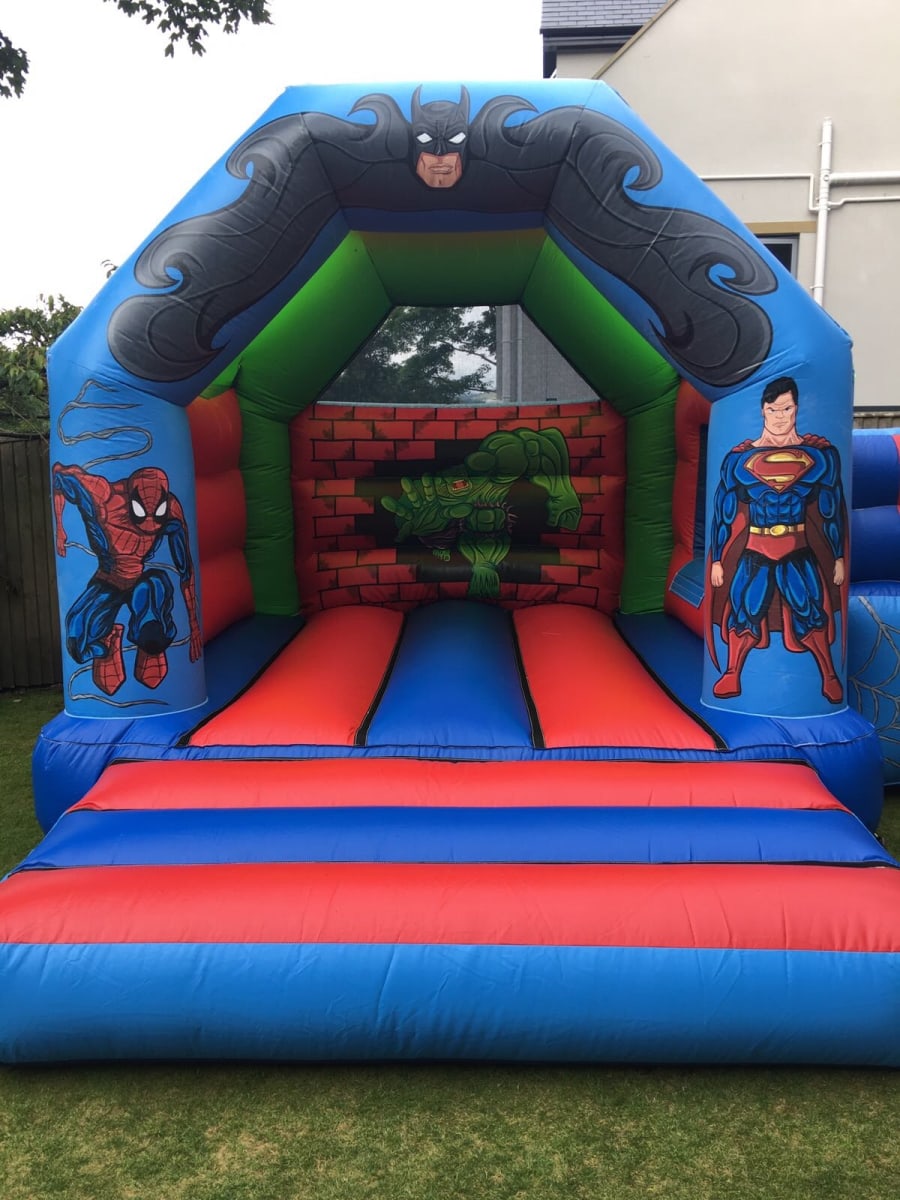 A fantastic castle with 4 of the best known superheroes of all time! Batman, Spiderman, Superman and the Hulk! A very vibrant castle thats very colourful with stunning artwork! This castle grabs everybodys attention! This castle is very popular so please book in advance! This castle is ideal for indoor and outdoor use! Package Deals available - discounts available if you hire multiple items! Call 07881 828363 to discuss your party requirements.