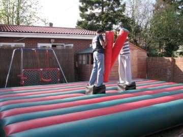 For Kids and Adults! Knock your opponent of the podium with the Pugil sticks provided! last one standing is the Winner! Comes with 2 headguards, 2 Pugil sticks, 2 podiums and bouncy base ! Package Deals available - discounts available if you hire multiple items! Call 07881 828363 to discuss your party requirements.