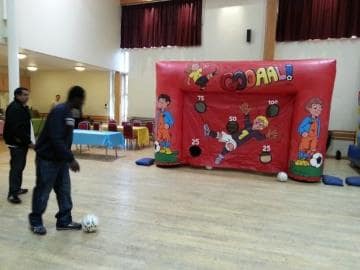 For the football fans out there - try to shoot and score past the keeper at the back of the inflatable tunnel! Different holes have different scores! Can you bend it like Beckham and score yourself a 100 points?