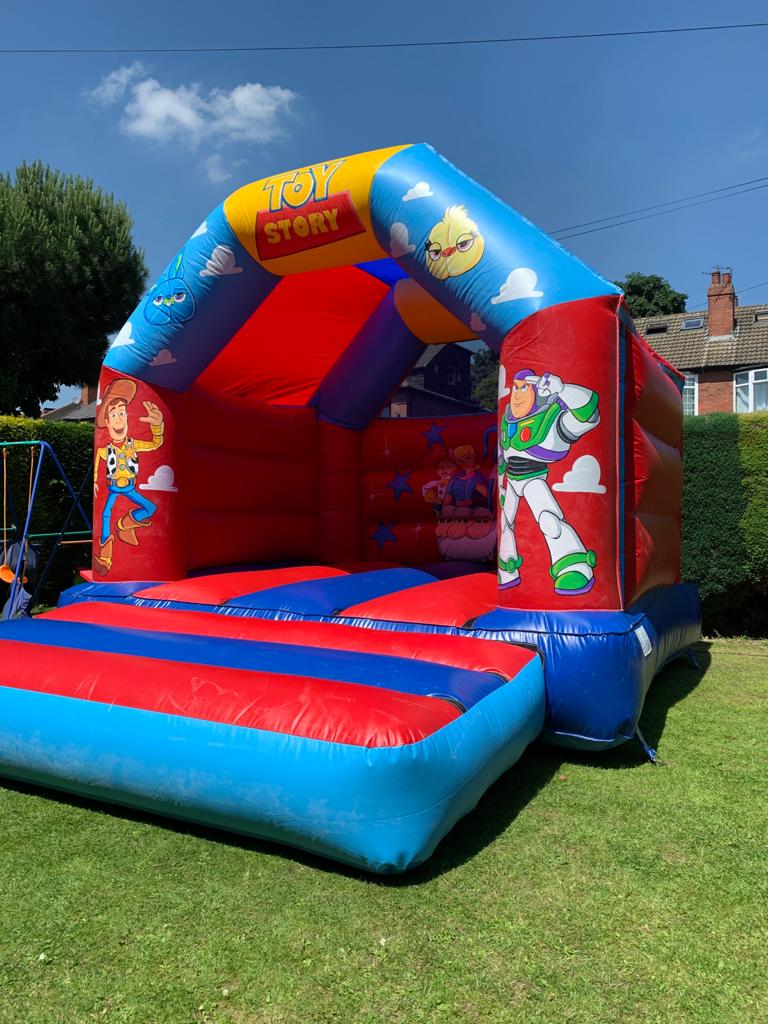 A brightly coloured Toy Story themed party castle which is suitable for boys and girls!